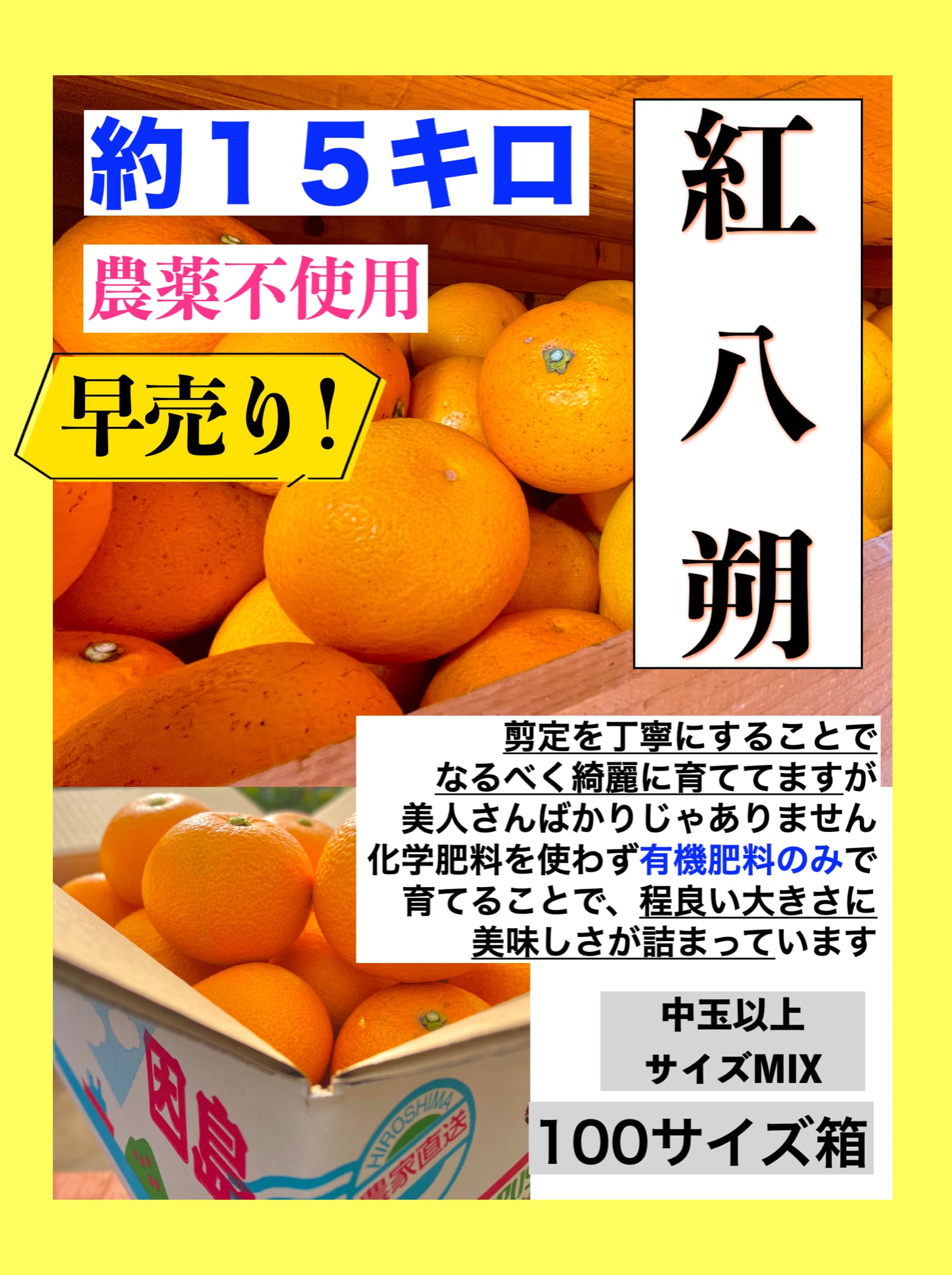 早売り!因島産・紅八朔【約15キロ】農薬不使用