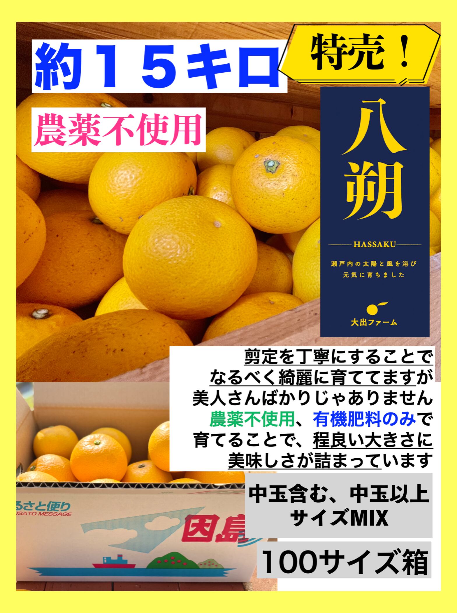 旬です!特売!因島産・八朔【約15キロ】農薬不使用