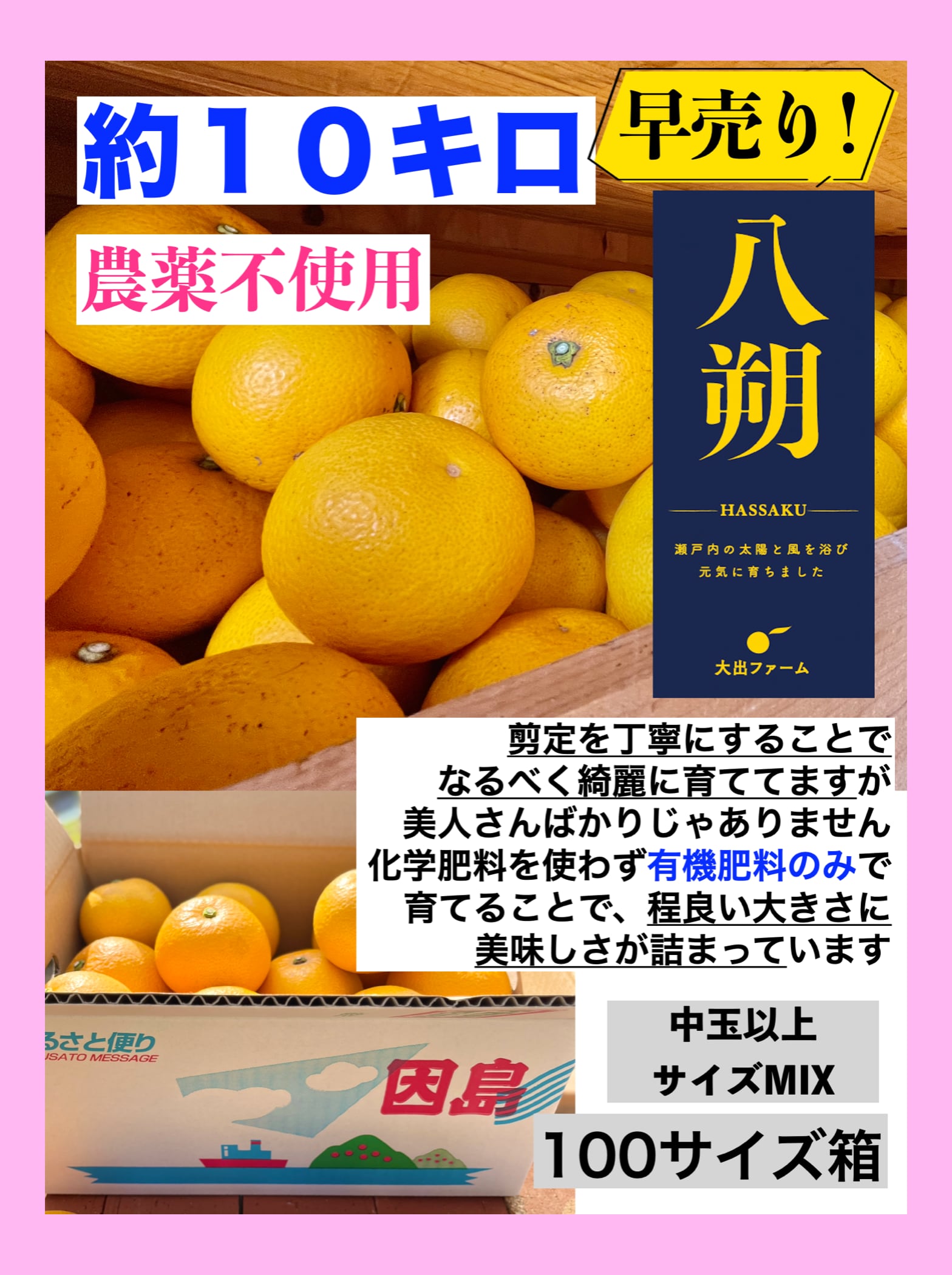 早売り!因島産・八朔【約10キロ】農薬不使用