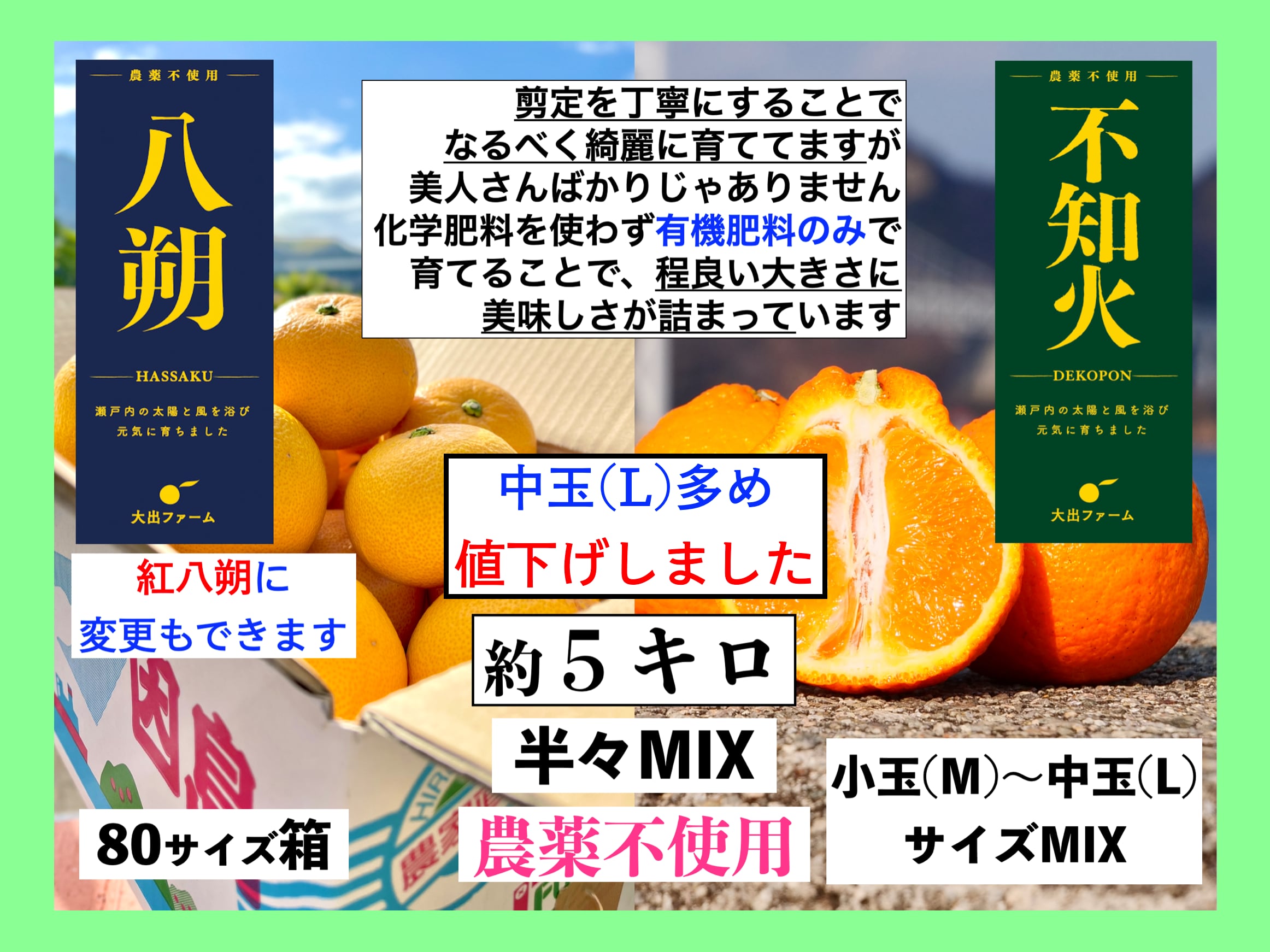 因島産【約5キロ】八朔&デコポン(ほぼ半々にいれて)農薬不使用