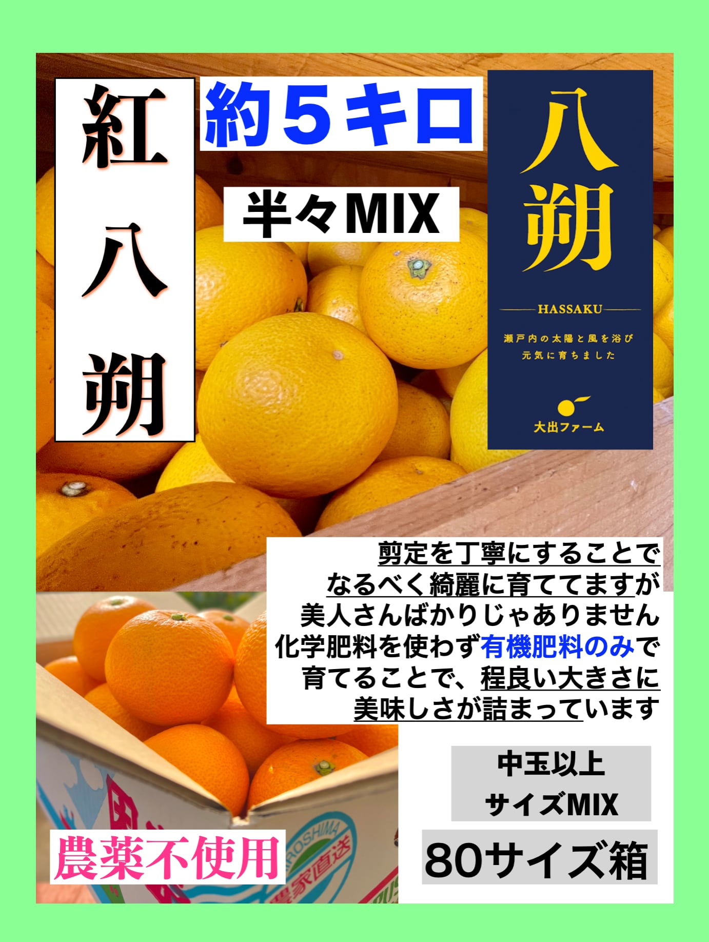 早売り!因島産・八朔&紅八朔(ほぼ半々mix)【約5キロ】農薬不使用