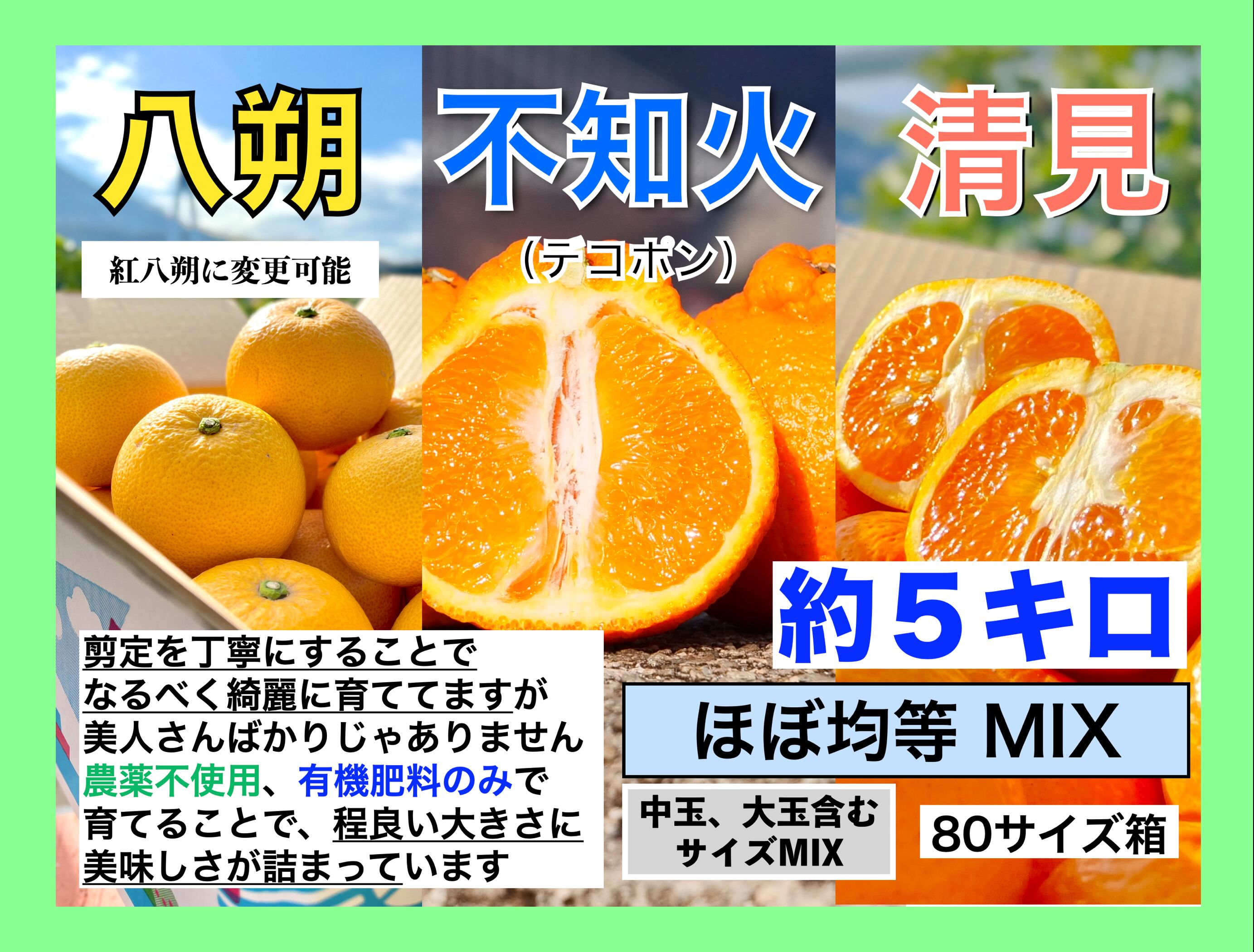 【約5キロ】八朔&デコポン&清見《3種MIX》(ほぼ均等にいれます/全て因島産)