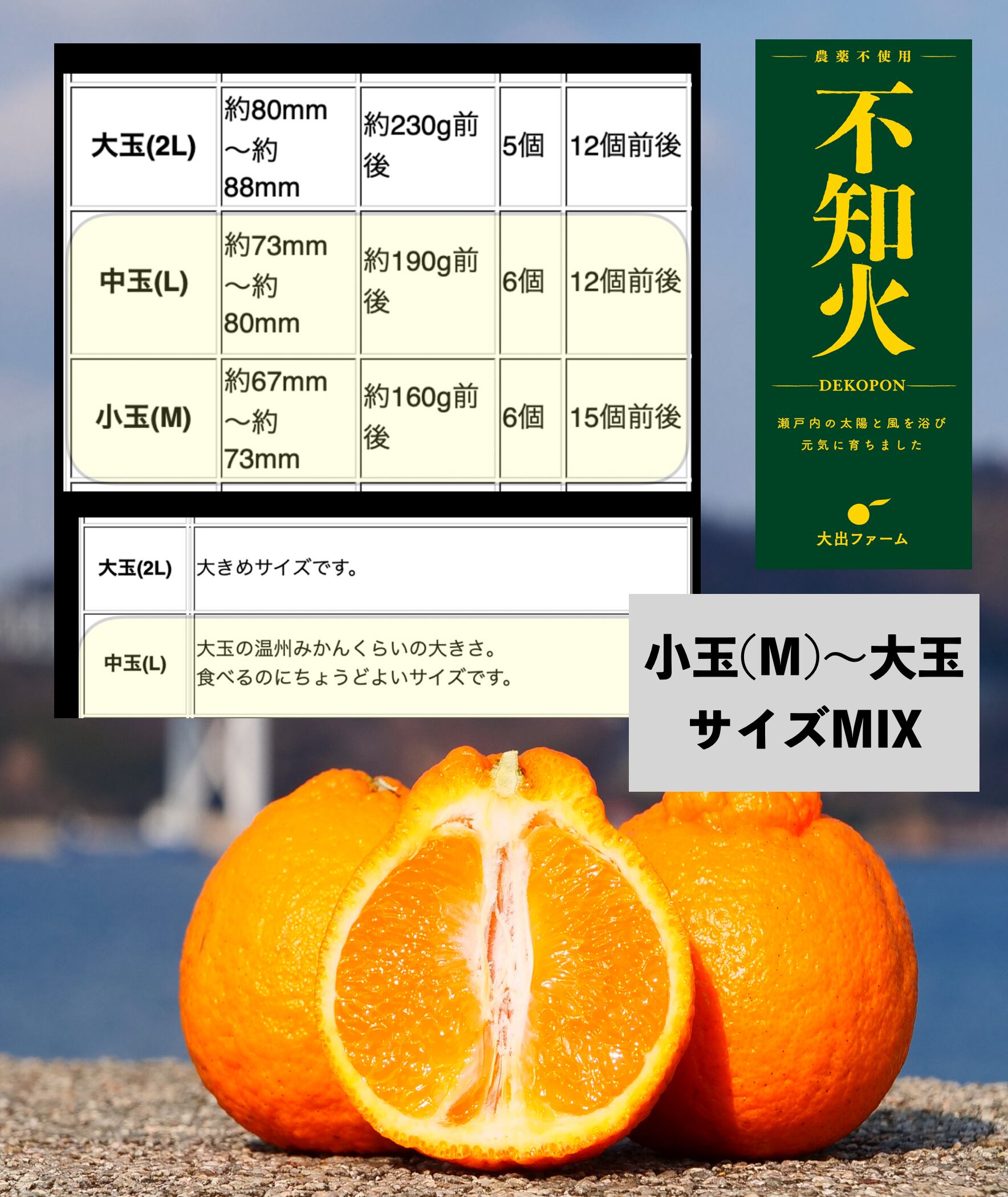 小玉(M)少々、中玉以上のサイズ混合になります。